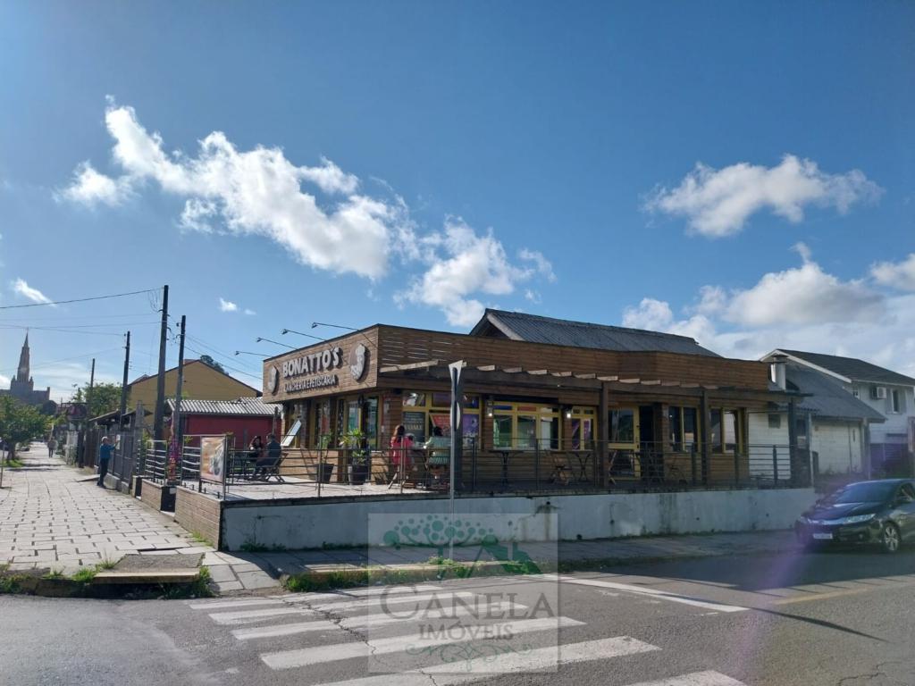 Localizado há duas quadras da Igreja Matriz de Canela, em rua movimentada, com prédio comercial e uma casa para moradia.